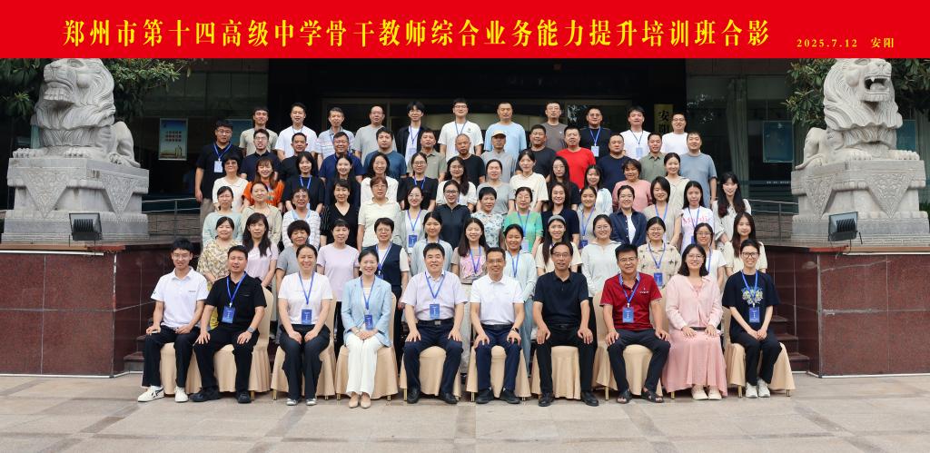 7月12-15日,由郑州市第十四高级中学主办,安阳师范学院继续教育学院承办的“教师素能提升培训班”在我校顺利举办,共有73名学员参加了培训。本次培训开设了《深入学习党的二十届三中全会精神,全面践行教育家精神,为建设教育家强国贡献力量》《校园应急与安全管理》《提升教学管理及AI赋能教学改革暨智慧课程建设》《为心灵解压,开启幸福生活》等多门专题讲座,组织学员深入河南省师德师风涵养基地-红旗渠开展现场教学。